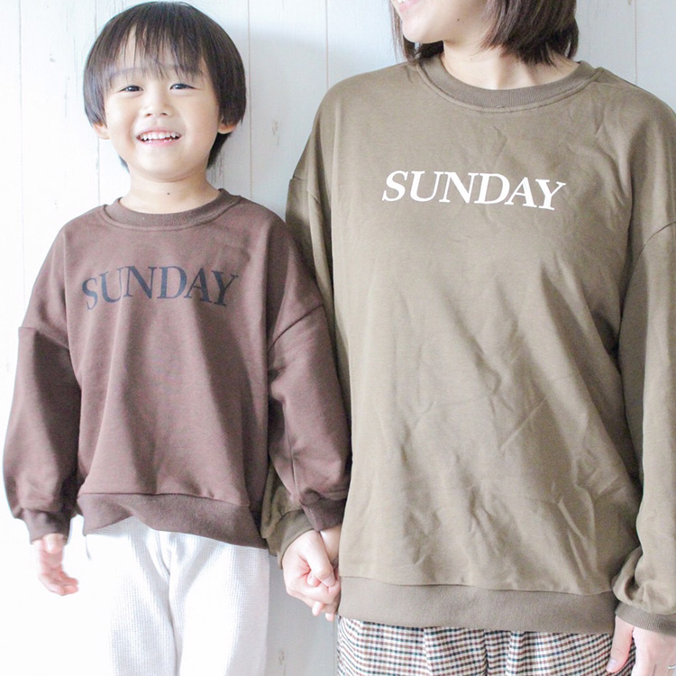 ペアルック 親子お揃い日曜日ロゴ入りトレーナー