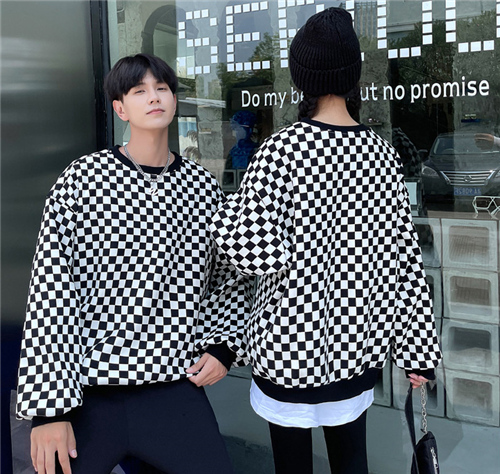おしゃれな市松模様が印象的なペアルック用トレーナーです。