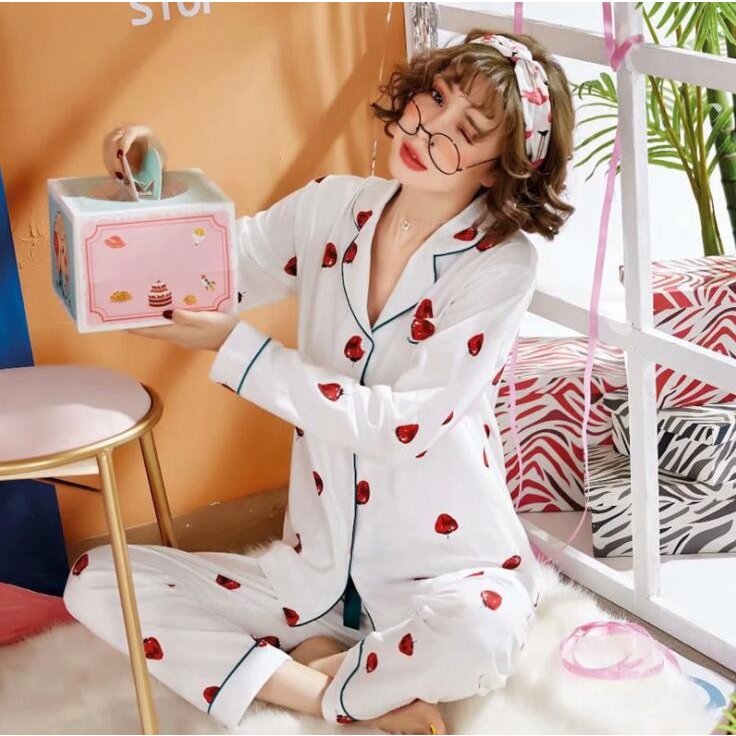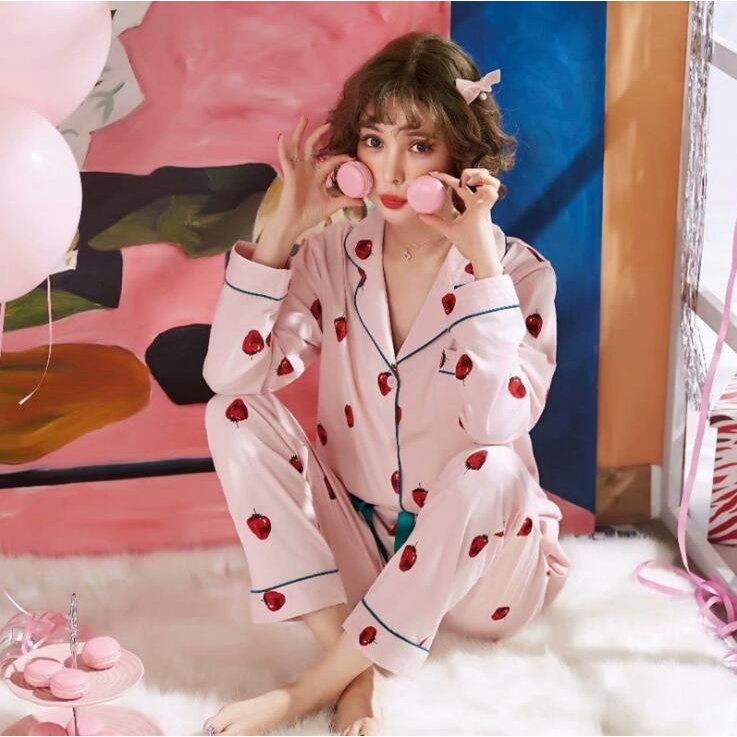 ピンクベースに赤いいちごのプリントがとても愛らしく、親子でペアルックを楽しめる上下セットです。