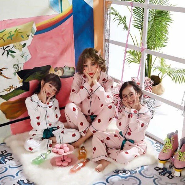 可愛いいちご柄が印象的な親子ペアパジャマです。