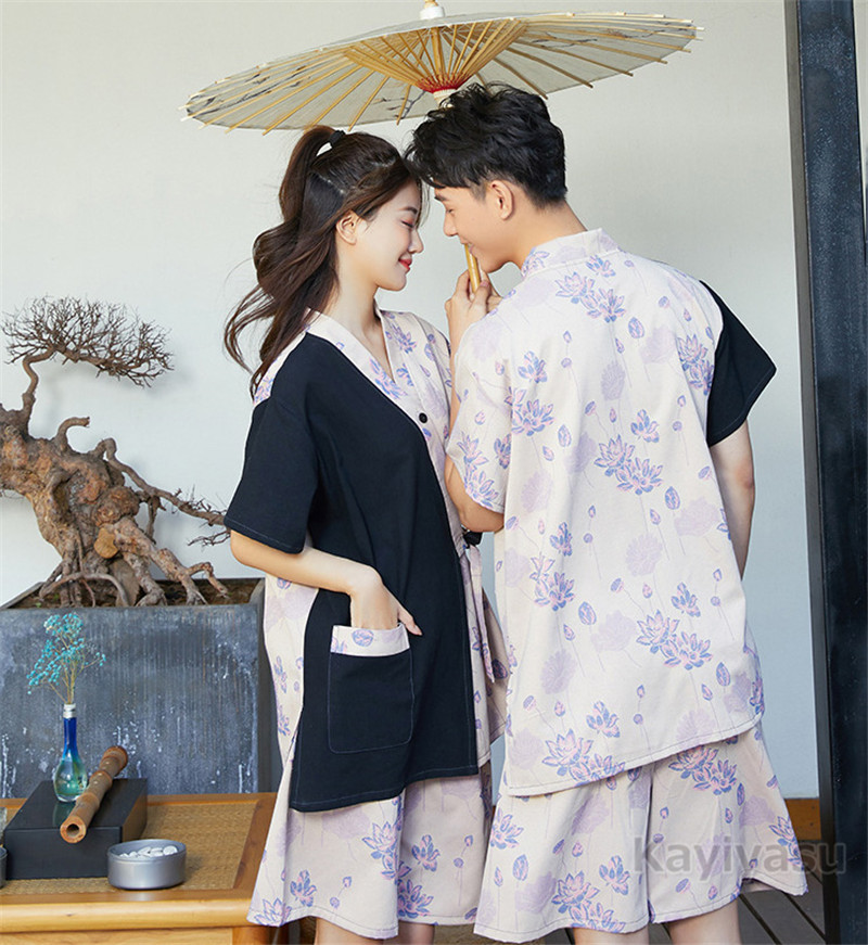 カップルで楽しむ温泉旅館風のペアルックパジャマセットです。