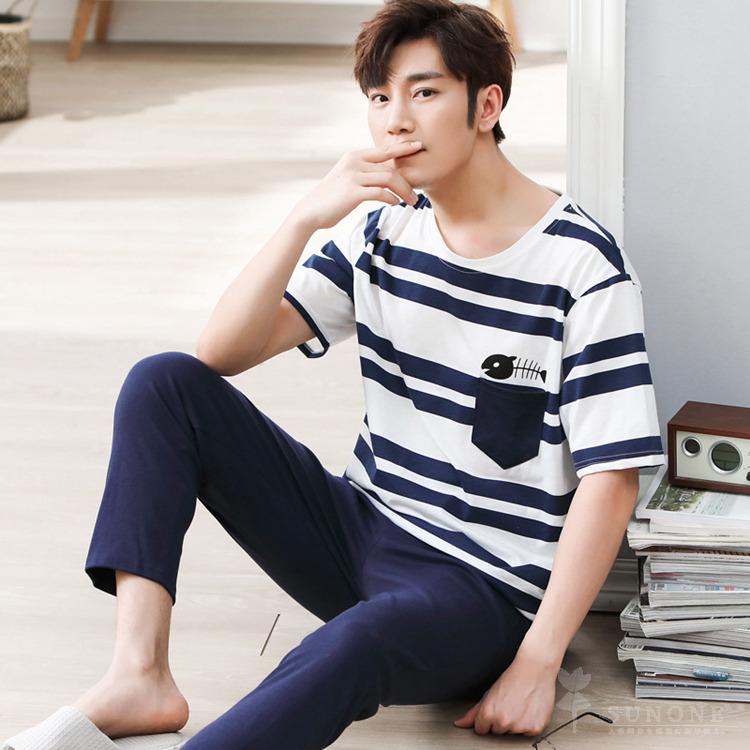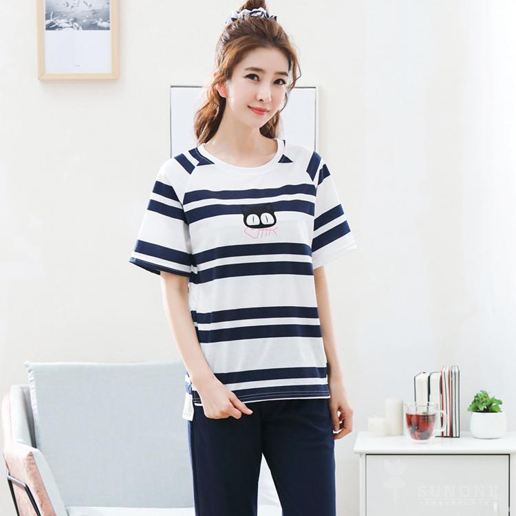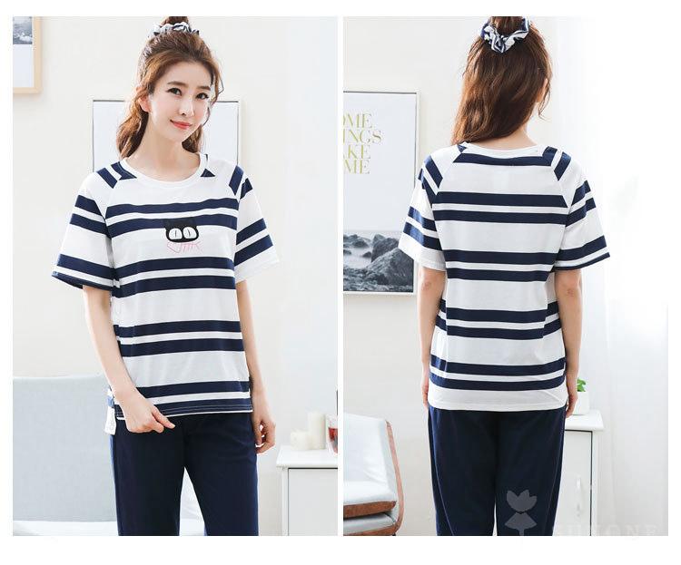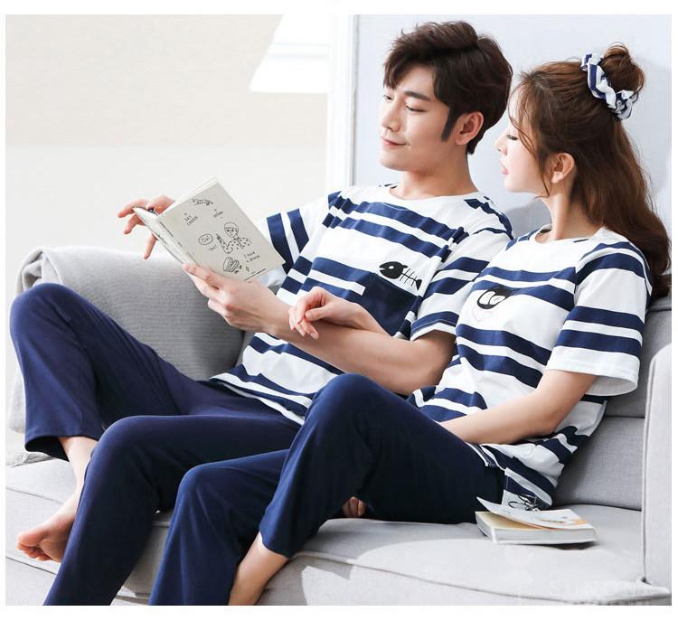 カップル半袖パジャマ ボーダー柄ペアルックパジャマ