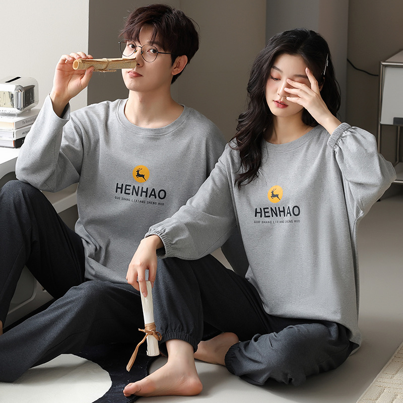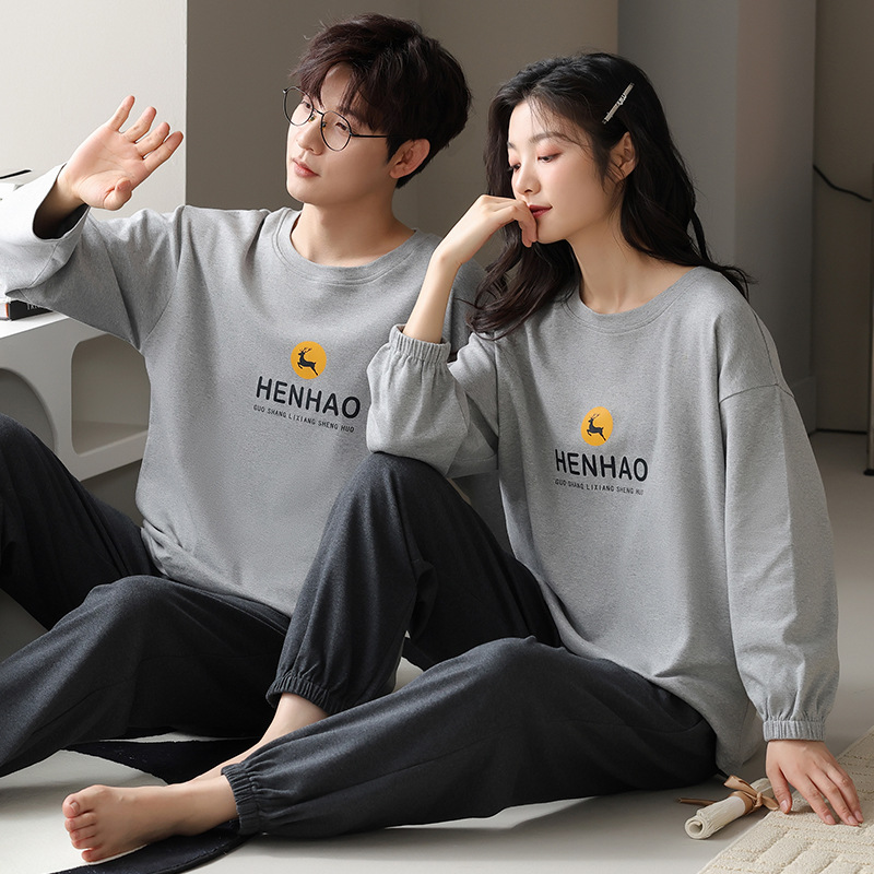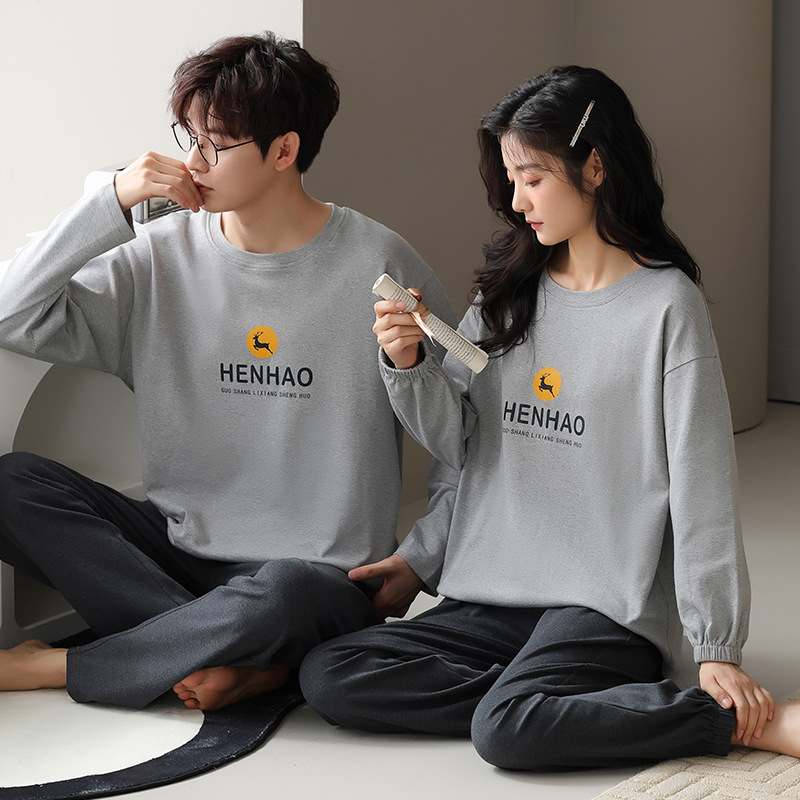 ペアルック 新作ゆったりカップルパジャマ ペア長袖ルームウェア
