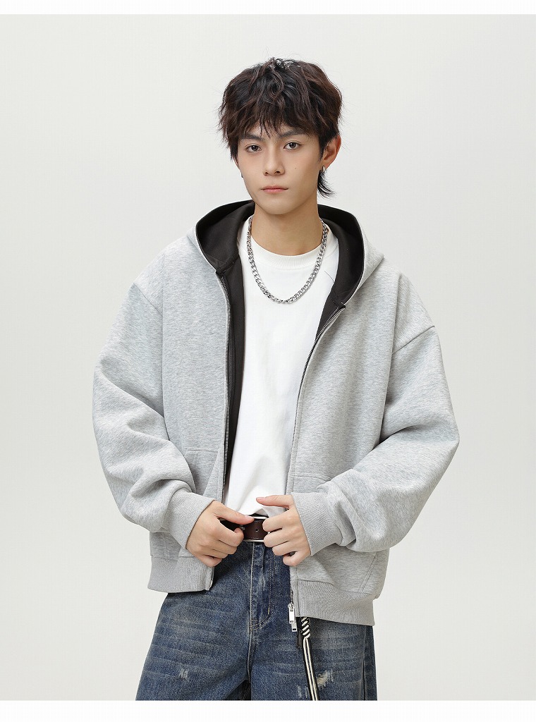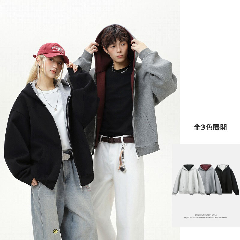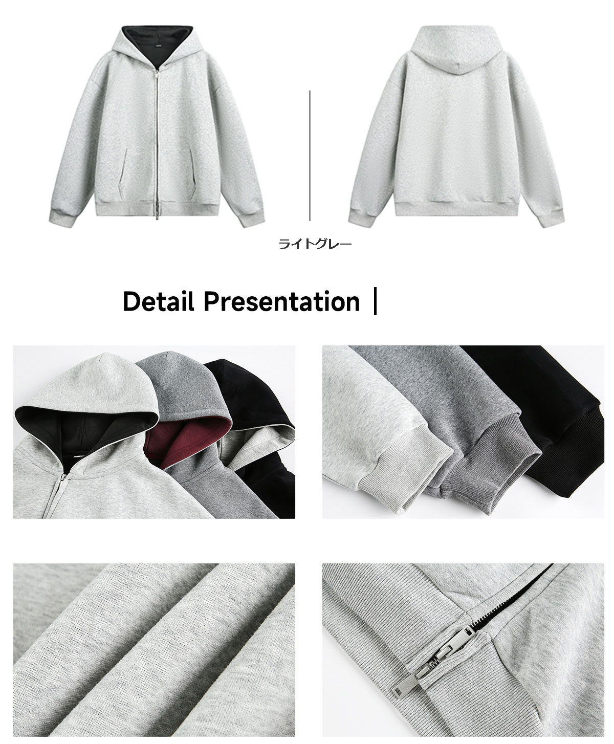 ペアルック 厚手配色裏地付きパーカー メンズ秋冬用全3色
